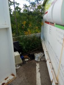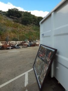Imágenes del lamentable estado de deterioro y desuso en el que se encuentran los dos puntos limpios móviles sitos en el almacén municipal.