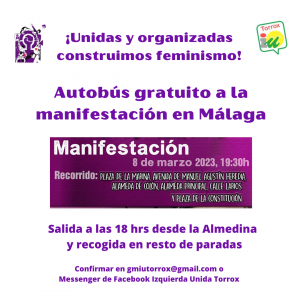 Por eso mismo, IU como cada año, pone a disposición de todas las vecinas y vecinos un autobús que saldrá a las 18:00h desde la Almedina, y hará las paradas habituales para recoger a aquellas personas interesadas en asistir.